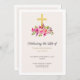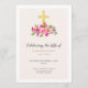 Pink and Gold Floral Funeral Memorial Order of Service Program with Cross