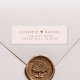 Elegant light pink return address labels for your wedding invitations, save the dates, engagement announcements, thank you cards and other correspondence featuring your names monogrammed in classic gold serif typography and joined together by a heart.