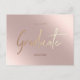 Custom Graduation Card with no photos. Elegant Pink Graduate Announcement or Invitation Postcards, Stylish Modern Calligraphy Script text Postcards in faux pink rosegold metallic foil.