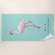 Elegant Pink green Flamingo | Monogram Custom Dry Beach Towel
