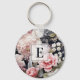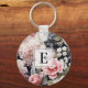 Elegant Pink Grey Floral Monogram Key Ring