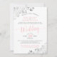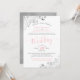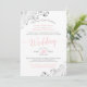Desperate times call for desperate measures! Due to the ongoing public health emergency, couples are finding creative ways to celebrate their weddings. This beautiful invitation will invite your guests to virtually attend a livestream of your wedding. It features a simple yet elegant design with pink and grey script calligraphy on a white background and frilly silver grey faux foil filigree in the corners. Because love endures!
