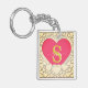 Elegant Pink Heart and Initial, Name Stylish Key Ring