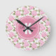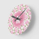 Elegant Pink Hydragea Flowers Pattern Monogram Round Clock