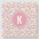 Elegant Pink Hydragea Flowers Pattern Monogram Stone Coaster