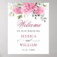 Elegant Pink Hydrangea Eucalyptus Wedding Welcome Poster