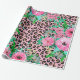 Elegant Pink Leopard Print and Floral Design Wrapping Paper