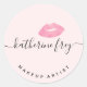 Elegant pink lips handwritten script calligraphy classic round sticker