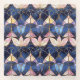 Elegant Iridescent Pink Lotus Faux Stained Glass Pattern design with navy blue background and gold accents