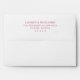 This wedding envelope design features a minimalist layout with centered text on a clean white background, creating an elegant and sophisticated look. The muted pinkish-red color palette adds a soft contrast, enhancing the contemporary feel of the design. Utilizing crisp, sans-serif typography, the layout emphasizes clarity and readability, making it perfect for formal occasions. The absence of additional graphics keeps the focus on the personalized names and address, ideal for couples seeking a sleek and modern aesthetic for their special day.
