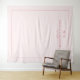This wedding backdrop features a minimalist design with a soft pink background and a delicate coral border framing the central elements. The layout includes bold, serif initials "M | K" at the top, followed by elegant names and date in a lighter font, all centered for a balanced look. The clean lines and understated color palette create a modern and sophisticated atmosphere, perfect for an intimate and stylish wedding celebration. Its simple yet chic aesthetic makes it ideal for capturing memorable moments on your special day.