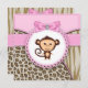 Elegant Pink Monkey Baby Girl Shower Invitation
