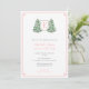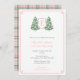 This elegant baby shower invitation design features stylised green Christmas Trees in chinoiserie planters decorated with pink and white baubles. In front of these is a badge / shield shape containing the initial of the baby (can use first initial if known or otherwise the first letter of the surname). The watercolor elements were hand-painted by me before being scanned into digital form (the shield shape is by another artist). Please note you can change the border colour on the front (currently a light pink) by entering the design tool and changing the background colour of the front side. On the reverse is a pink and green plaid print. Shown here for a baby shower but all of the text is customisable to your needs so you could also use this as a couples wedding shower invitation for example.