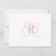 An elegant pink monogram on white note card featuring an ornate script with swashes overlay on a serif initial, with your name underneath. Elegant, chic contrasting type.