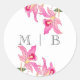 Elegant Pink Orchid Blooms Initials Monogram Classic Round Sticker