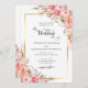 Elegant Pink Peach Floral Watercolor Wedding Gold Invitation