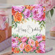 Celebrate a birthday with timeless floral beauty. This Happy Birthday greeting card features a lush watercolor arrangement of pink peonies and coral roses, framed with soft greenery for an elegant and feminine look. The hand-painted style and vibrant blooms create a warm, joyful design that feels both classic and modern.