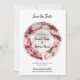 This design features a bunch of pink peony flowers. The pink tones of the peonies together with the white semi opaque circle frame encircles the bride's and groom's names. Peonies are a popular wedding flower selection as they add elegance and grace. A unique design ideal for a pink themed or peony inspired wedding. The black chic typography selected compliments this design. The reverse of the design is pink in colour matching the pink tones of the peonies. The ideal elegant floral design. Elegant wedding save the date design with modern elements. Matching wedding invitations and other stationery items are also available.