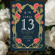 Capture timeless elegance with this Art Nouveau-inspired Table Number! Featuring pink peonies, leaves against a rich blue background, this design sets the tone for a sophisticated celebration. Perfect for weddings, galas, and milestone events! Please note that the gold on this product is NOT real foil; it is printed flat. ATTENTION: Items are printed exactly as they appear on your screen when you add them to the cart, so personalise and add each table number you need to your cart individually.