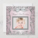 Elegant silver grey swirls pink and grey first birthday party invitation template. This beautiful pink and grey photo birthday party invitation is easily customised for your event by simply adding your photo and event details, font style, font size & colour, and wording. Please note - all of the stickers, cards and invitation designs you will find on Zazzle are printed graphics with no actual jewels, bows, raised, embossed, or added parts or pieces.