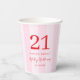 Create your own personalised 21st birthday party paper cups featuring modern typography and striped pink pattern background