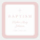 Elegant Pink Religious Cross Boy Baptism Square Sticker