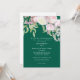 Pink Floral Foliage Wedding Invitation. Emerald Green background.