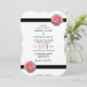 This design features elegant pink rose flowers. The floral pink roses combined with the elegant black ribbon image create a sophisticated simple border framing the wording. The pink tones of the rose flowers contrast against the black ribbon and wording creating a chic elegant style. The reverse side mimics the other side. Elegant wedding invitation design with modern elements. Matching wedding stationery items and other wedding invite formats are also available.