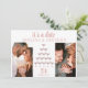 This unique elegant wedding save the date design features a beautiful Rose Gold Champagne Tower and a classy, sleek, elegant hand script typography and 2 photos of the couple on the front side. Cards reverse to showcase the couple's monogram and photo, and space for a personalised message, QR code, wedding website and a third photo of the couple.