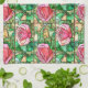 Elegant Pink Rose Faux Stained Glass Pattern Tea Towel