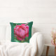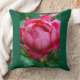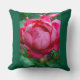 This beautiful throw pillow features a vibrant pink rose set against a deep forest green background, creating a classic and elegant floral look for any living room or bedroom decor.