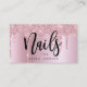 This gorgeous nails technician business card design features faux pink rose gold dripping glitter metallic texture and elegant calligraphy font.