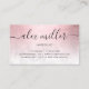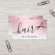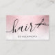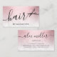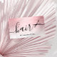 Modern hairstylist business card design with gradient faux pink rose gold and white marble texture, scissors and elegant calligraphy font. Personalise the product with your name and details.