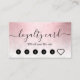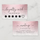 Stylish makeup artist loyalty card design with gradient faux pink rose gold, white marble texture and elegant calligraphy font.