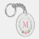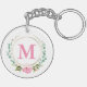 Elegant Pink Rose Monogram Floral Wreath Acrylic Key Ring