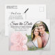 Elegant Pink Rose Oval Photo Wedding Save The Date Announcement Postcard