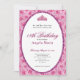 This elegant pink floral 18th birthday debut invitation has pink roses, a tiara crown, and a pink glitter oval with a personalizable template to create your own message. The invitation template is customizable in the listing editor and is also available as a digital download that's printable after you personalize it. The back has pink roses covering the entire surface to create and classic and classy mood for your event.