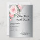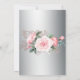 This very luxe, elegant baby shower announcement features a metallic silver and pink floral pattern. There is a gorgeous bouquet of pink roses and rose buds across the top left corner, with a larger pink rose bouquet on the back of the invite. All on a luxurious and stylish silver metallic-look base.
