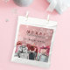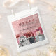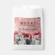The design showcases a glittering, sparkling rose gold or pink glitter background that immediately draws the eye. Layered over this shimmering backdrop is the festive greeting, "Merry Christmas," in an exquisite, modern script and serif font combination. You can easily personalise this favour bag with your family name or a special message to create a unique and memorable touch for your guests.