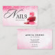 Elegant Pink Sparkly Nails Technician Monogram Business Card