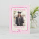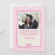 Elegant Pink Stripes Bow Frame Graduation Photo Announcement