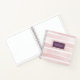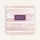 Pink, white, and plum purple personalised sketchbook notebook with chic blush pink watercolor painted stripes and your name on the cover, along with custom text to create different volumes or topics and add to your art journal or bujo planner collection.