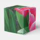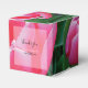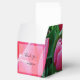 This design features elegant pink tulips in its natural greenery. A beautiful field of pink tulips is used for the background. The wording is elegantly framed with a simple white opaque border background. This is the perfect floral wedding design ideal for any wedding theme. Elegant and romantic tulip flowers wedding favour box design with modern elements. Matching wedding invitations and other stationery items are also available.