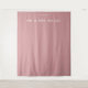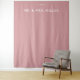 This wedding backdrop features a minimalist design with a solid pink background, creating an elegant and warm atmosphere. The layout is simple and balanced, showcasing clean, serif typography that highlights the names "MR. & MRS." in uppercase letters, perfect for personalisation. The soft colour palette and modern style make it ideal for formal occasions, offering a sophisticated touch to any celebration. Its understated aesthetic focuses on clarity and simplicity, ensuring it complements any wedding theme seamlessly.