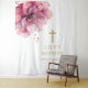 Elegant Pink Watercolor Floral Baptism Backdrop Tapestry