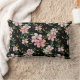 Elegant Pink Watercolor Floral Black Botanical Lumbar Cushion