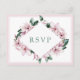 Elegant Pink Watercolor Magnolia Wedding RSVP Postcard