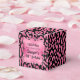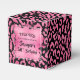 Pink and black leopard print pattern 2" square favour boxes feature your thank you message on pink faux foil on the front in chic lettering. Beautiful for birthday party favour boxes and more. MATCHING items in our store.