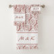 Elegant Pink White Monogrammed Fern Frond Swirls Bath Towel Set
