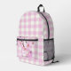 A classic gingham plaid pattern with a elegant pink cherry blossoms.